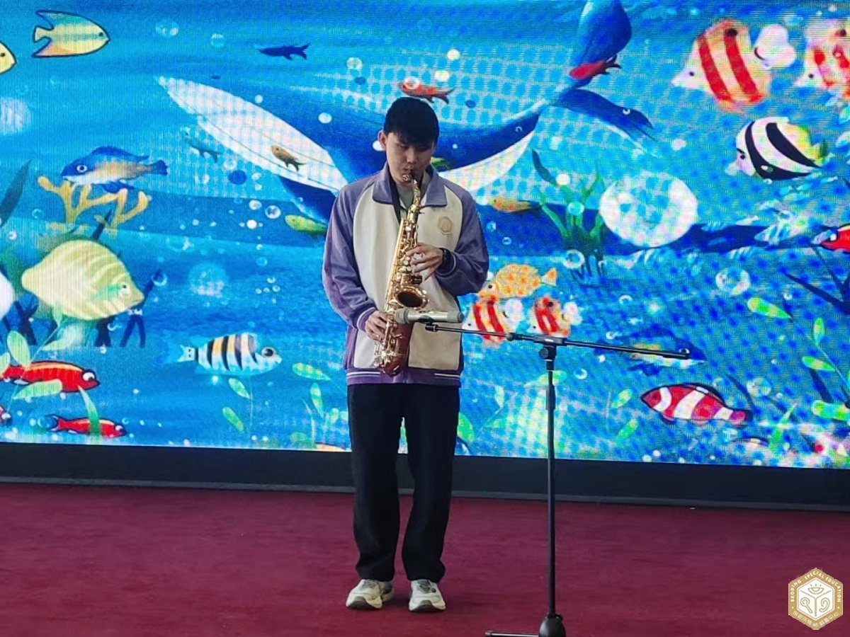 启智部学生带来乐器演奏《云宫迅音》,灵动的旋律里藏着他们对艺术的向往;启明高三学生赵佳旭的萨克斯独奏《海底世界》,更以悠扬乐声传递出青春的蓬勃力量,赢得现场阵阵掌声。