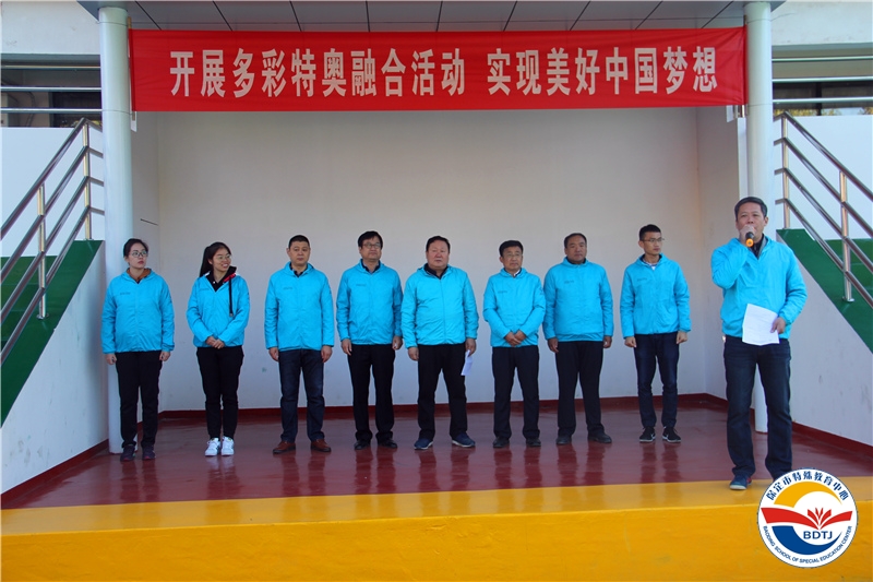 保定市教育局思政体卫处刘会同处长宣布:2018特奥东亚区融合学校活动开幕!本次融合学校活动正式开启!