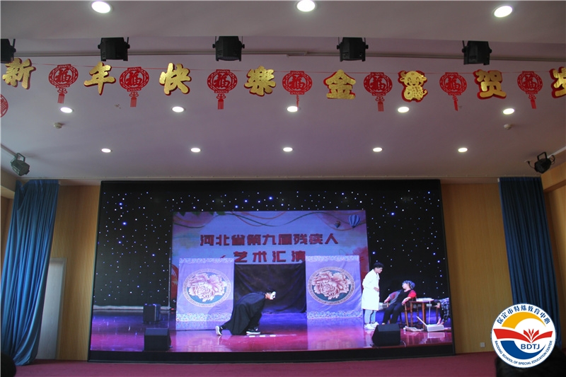 启明部学生带来歌曲《听我说谢谢你》、《你是人间四月天》、《天使的翅膀》、《桥边姑娘》、《太阳》、《最美的光》,钢琴独奏《菊次郎的夏天》和萨克斯独奏《问佛》,展现了盲生的青春活力,也道出了特教学子的梦想和心声;启聪部歌伴舞《太极扇》、《韭菜舞》、《国家》、《中国范儿》、《可爱舞》、《龙骑士战队》散发着孩子们无穷的活力;启聪部高三小品《别离》,作为河北省少儿春晚录制获奖作品,在学校的舞台上再次上演,将会场气氛推向新的高潮。