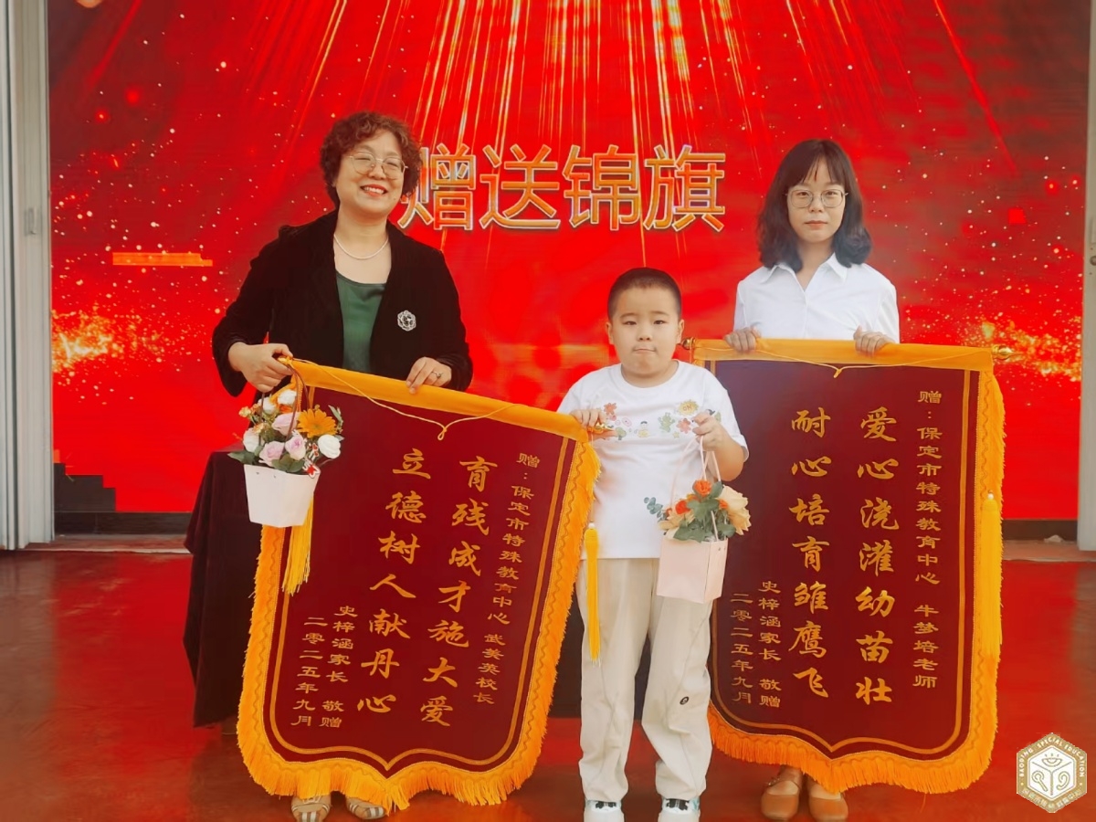 一年前,史梓涵同学进入了我校,班主任联合各科老师对他制定了合理的教学目标,用超乎想象的耐心,一点点帮孩子适应,取得了很大的进步,为了表达对老师们地感谢,将锦旗送给我们。