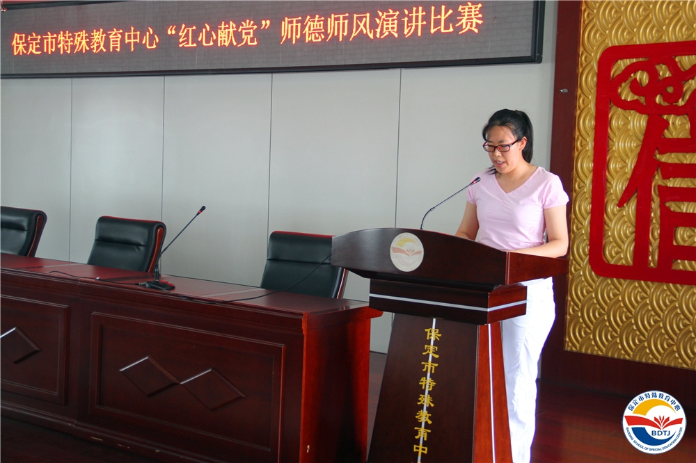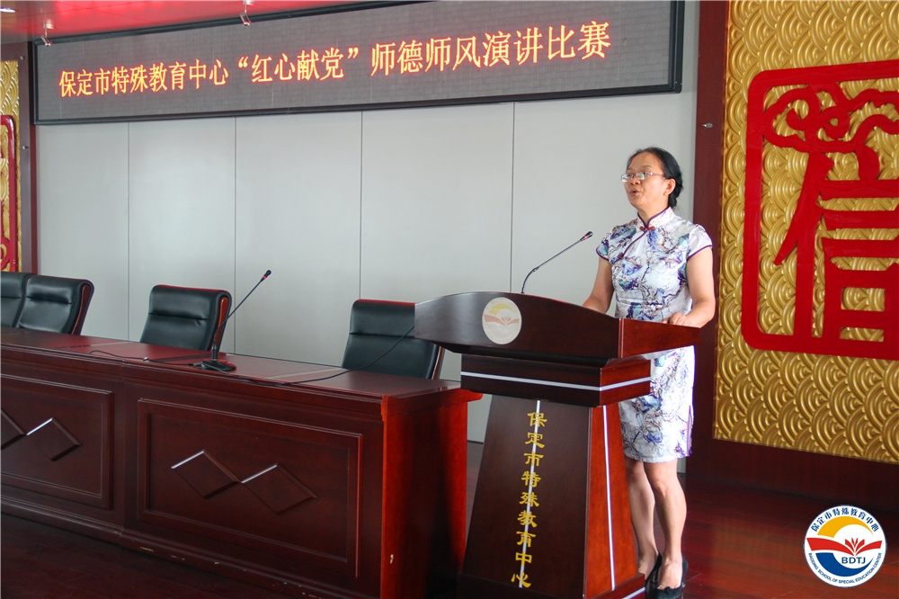 有一首歌最为动人,那就是爱心流淌的师德。有一种人生最为美丽,那就是默默耕耘的教师。有一种风景最为隽永,那就是无私奉献的师魂。为迎接建国70周年,建党98周年,贯彻落实保定市中小学幼儿园师德师风提升年活动实施方案,全面提高教师的职业道德和专业水平,展现我校广大教师坚守师德、敬业爱岗的高尚品德和无私奉献的精神,2019年6月26日下午,保定市特殊教育中心在学校五楼会议室举行“红心向党”师德师风演讲比赛。