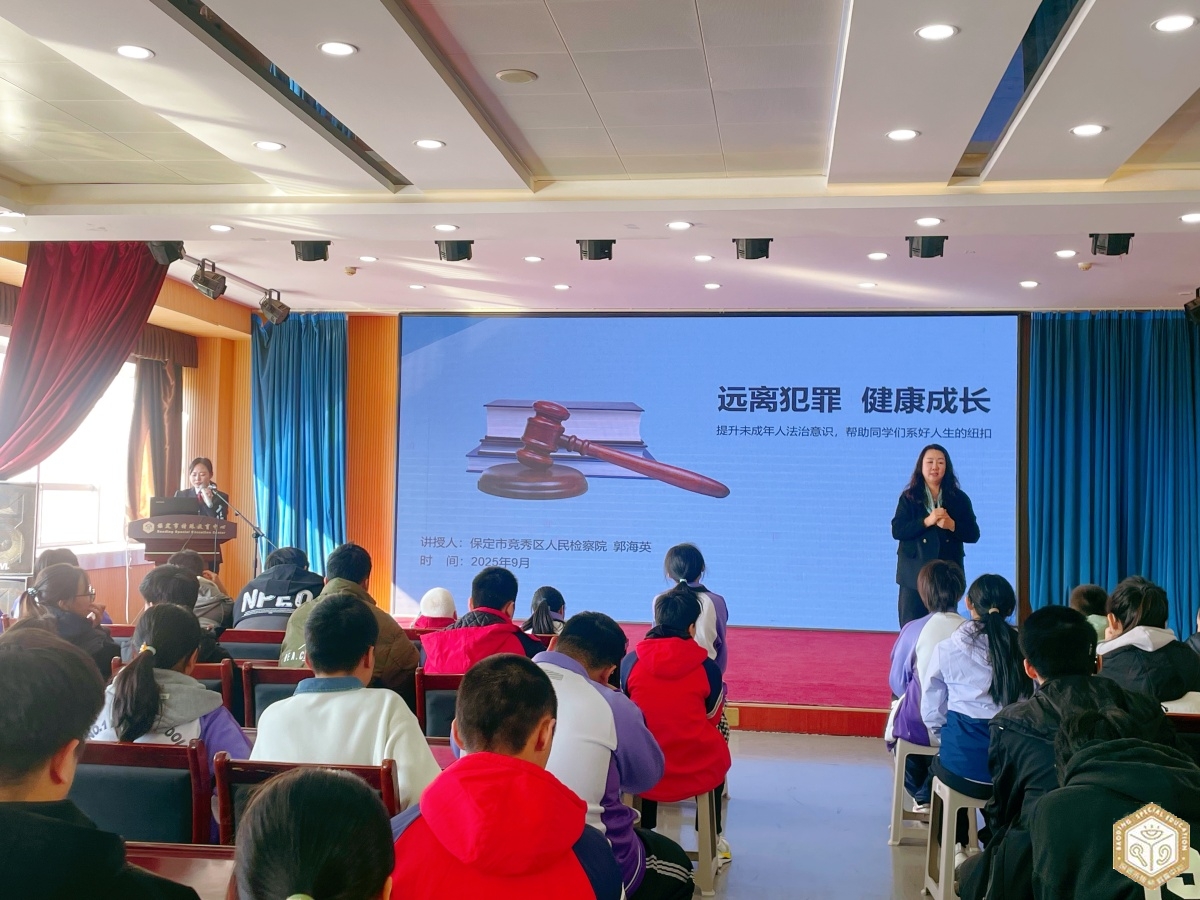 为切实提升未成年人法治意识与自我保护能力,筑牢校园安全防线,保定市特殊教育中心特邀学校法制副校长、保定市竞秀区检察院第二检察部副主任郭海英,开展了题为《提升未成年人法治意识 帮助同学们系好人生纽扣》的专题法治讲座。全校师生通过现场聆听的方式,沉浸式学习法律知识,收获颇丰。