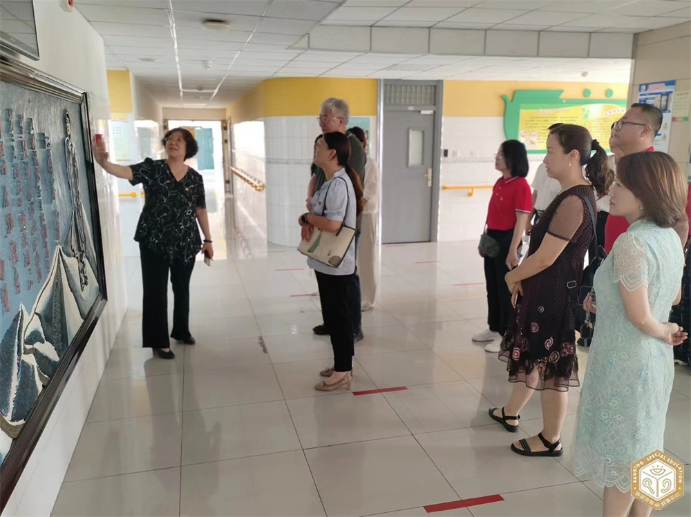 保定第十七中学和保定美术中学一行在校长武美英的陪同下,先后参观了校园文化、培智运动康复教室、感统教室、多感官教室、摄影教室、美甲教室、盲人按摩教室等。在运动场,观看了聋人足球队、跳绳等训练。对学校教育教学管理水平和丰富多彩的拓展课程表示高度认可。
