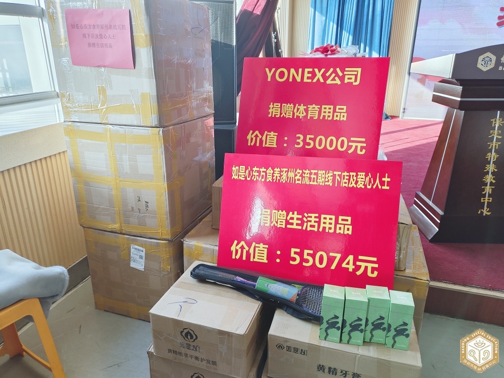 到场的捐赠单位代表有:河北省残疾人体育协会主席、河北省残疾人羽毛球队总教练李卫国,捐赠体育用品价值35000元;保定伍极物联网科技有限公司总经理吴益良,捐赠显示器两套价值90000元;如是心东方食养涿州名流五期线下店店长谭自强,捐赠生活用品价值55074元;河北建设集团股份有限公司第三分公司项目经理刘同剑捐赠学生校服,价值10000元。